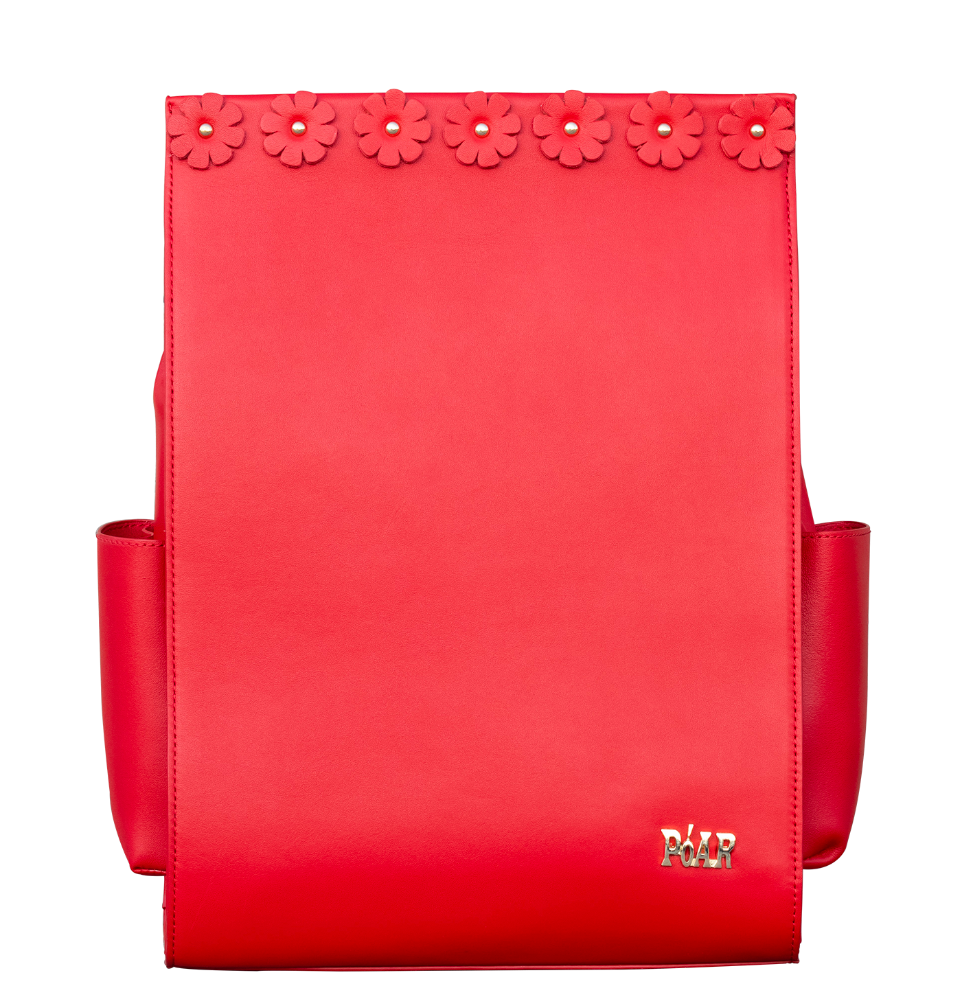 Designed for the modern traveler, the PóAR Women's Red Rosette Travel Backpack merges premium craftsmanship with intelligent organization. Constructed from 100% leather with a cotton-lined interior, this 14"H x 10"W x 5"D backpack features strategically placed compartments—including dedicated slots for writing instruments, eyewear, coins, and travel essentials like IDs and business cards. The rear-access pocket keeps critical documents within reach without opening the main bag. With 36" adjustable straps and a refined aesthetic, it's engineered for professionals and adventurers who demand both style and practicality from their everyday carry.